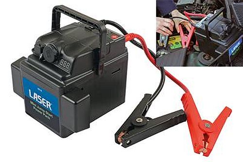 The Mini Jump Start Power Pack from Laser Tools (part number 5918) is an efficient and extremely compact emergency engine starting power pack. Packed full of features, it also features bright LEDs to illuminate the work area, probes to check the vehicle’s battery state of charge and alternator output after starting, 12V DC output socket, two 5V USB outputs (for charging mobile phones, etc) and a digital voltage display.