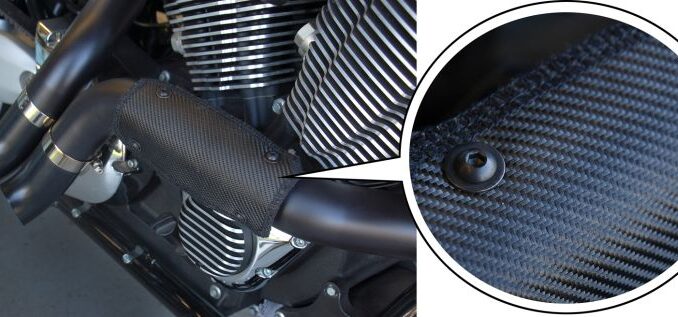 DEI’s new ONYX Series™ Flexible Heat Shield, available in a rich black finish, looks great and outperforms other conventional metal heatshields currently on the market, it is claimed. For improved thermal performance, DEI joined two durable materials together to form a dual layer design. The outer is made from heat-treated glassfibre, impregnated with molten aluminium (that’s what it says here!), which is then formed into a tight weave for added durability and strength.