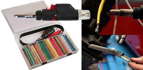 Heat-shrink tubing is the ideal way to repair and refurbish worn and cracked insulation of vehicle wiring or to insulate new wiring connections when adding accessories. This new kit from Laser Tools (part number 6076) includes a butane gas powered heat torch as well as a useful and generous selection of heat shrink tubing.
