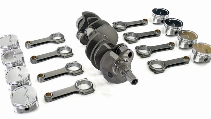 At the heart of each kit is a crankshaft and H-beam connecting rods forged from 4340 steel, plus a set of forged aluminium pistons. Scat also throws in piston rings, rod bearings, and main bearings.