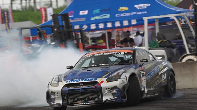 Team Toyo Tires Drift driver, Masato Kawabata has claimed the 2015 D1 Grand Prix Championship in Japan, his third D1GP championship victory. Driving the 1000bhp 35RX D-Spec Nissan GTR to another series victory with Toyo Proxes R1R tyres, a dominant season performance saw Kawabata claim the 2015 series with an un-assailable accumulated points lead.