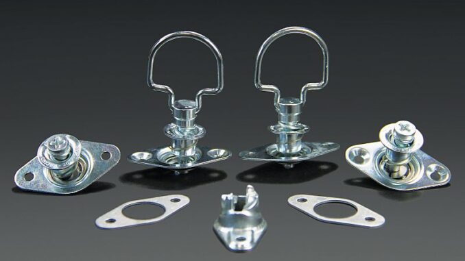 The key to the product is the use of a cross-head stud, which all but eliminates the risk of damaging expensive body panels and, by using a cam receptacle, consistent fastening performance is guaranteed. AeroLoc is also available with a bail handle for hand operation, where use of a screwdriver is difficult or regulations demand.