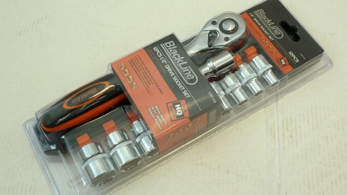 Metric set – chrome vanadium steel (50 x 30) – ½in socket set plus 72-tooth reversible ratchet and 5in extension bar Metric – 10, 11, 12, 13, 14, 15, 17, 19, 22 and 24mm. Priced at £17.86 inc VAT.