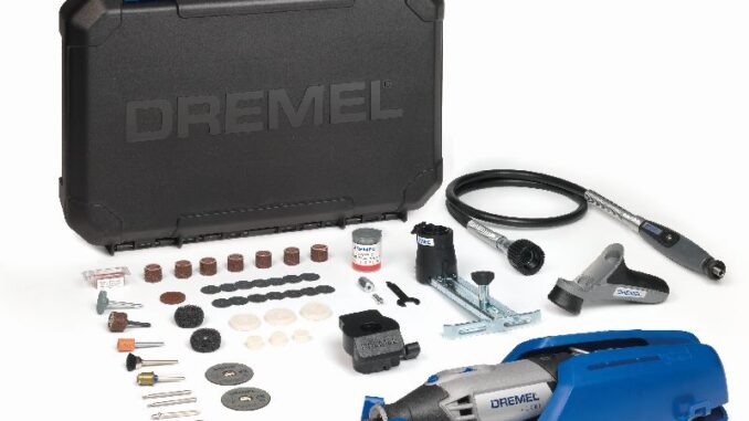 For the enthusiast, the 4200 – 4/75 EZ kit includes the top of the range Dremel 4200 with variable speed control, electronic feedback and Dremel’s EZ Change fast accessory change system. Simply pull the side levers and swap the accessory as needed.