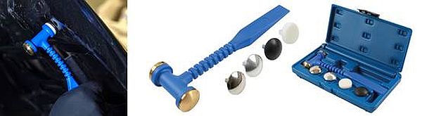 This versatile new mini precision hammer from Laser Tools (part number 7615 for the multi-head set or 7617 for the hammer separately) has a multitude of uses but is primarily designed for popping in trim clips; the handle is also a neat and flexible pry-bar, useful for removing trim clips.
