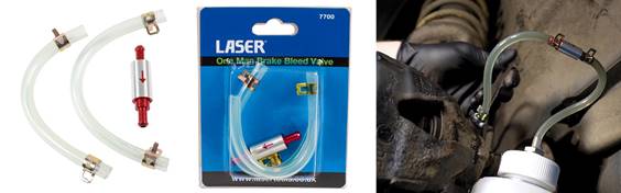 When manual or pressure bleeding brake or clutch hydraulic systems, it is essential to prevent fluid and air being pulled back into the system via the bleed nipple when the pedal or lever is released. The Laser Tools One Man Bleed Valve (part number 7700) allows a single person to perform the task without closing the nipple between pumps.