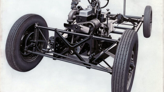 The firm’s steel ladderframe chassis was introduced in 1936, in the Morgan 4-4. This car’s name came from the fact that it was the first Morgan to have both four cylinders and four wheels – Morgan’s vehicles before this point, since the company’s foundation in 1909, were all three wheelers.
