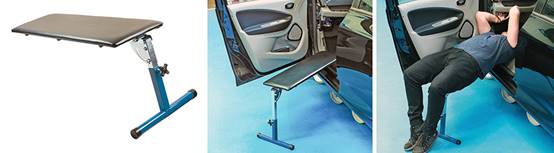 This is a sturdy (rated at 100kg) and fully adjustable support bench primarily designed for under-dashboard work where it is supported on the floor and across the door-shut and sill.