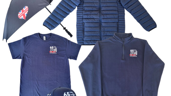 65th Anniversary 1/4 Zip Sweatshirt. Order as SWEATSHIRT02LGE, SWEATSHIRT02MED, SWEATSHIRT02SMA, and SWEATSHIRT02XLG at £45 inc VAT each.