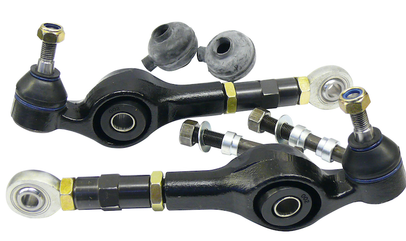 The original inner bush in the track control arm is replaced with spherical joints, thus providing precise camber adjustment. This can be achieved without removal from the car making them quick and easy to adjust in the pits to suit the particular track layout and conditions.