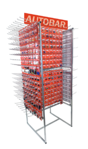 For example, its bestselling retail display is its rotational stand that holds more than 150 of Autobar’s best-selling products, including switches, battery terminals, hoses, fuses, tapes, hose clips and connectors, and only takes up two feet of floor space.