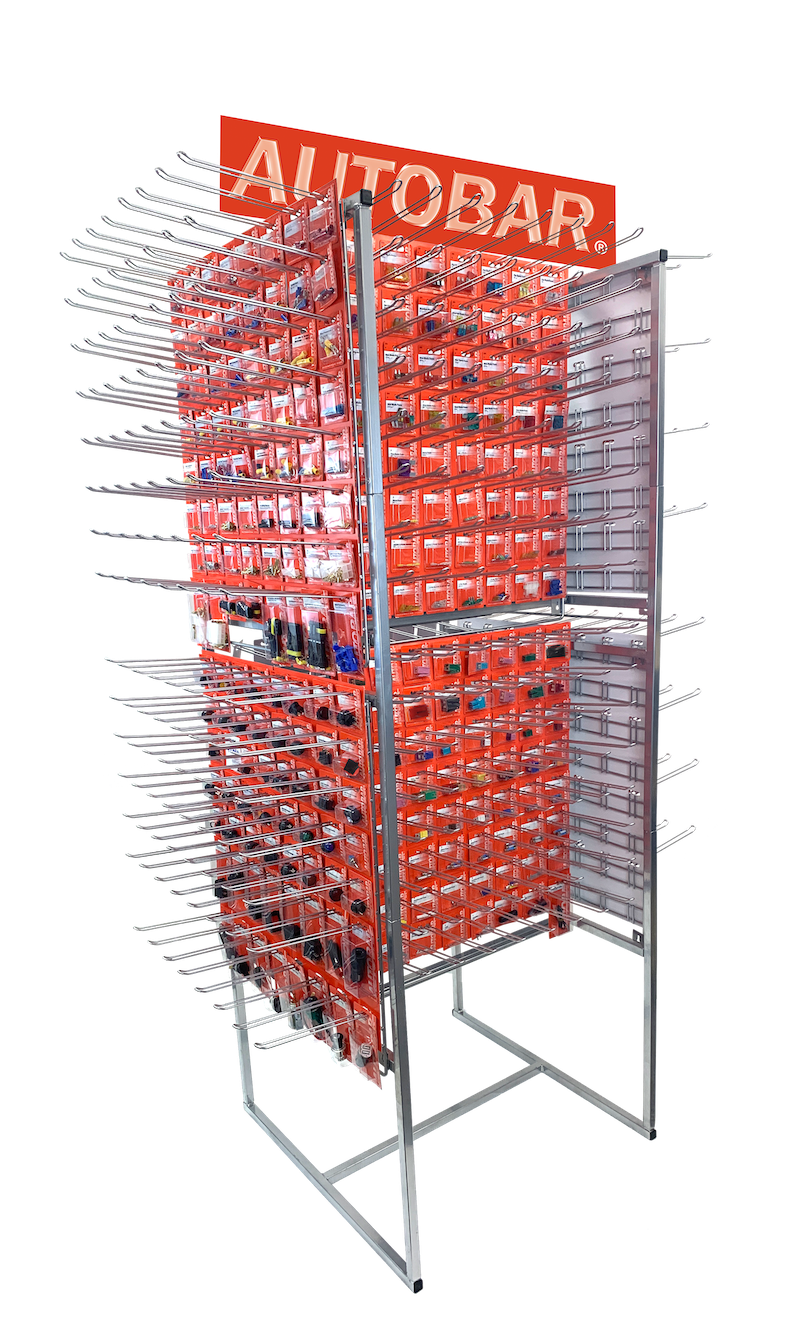 For example, its bestselling retail display is its rotational stand that holds more than 150 of Autobar’s best-selling products, including switches, battery terminals, hoses, fuses, tapes, hose clips and connectors, and only takes up two feet of floor space.