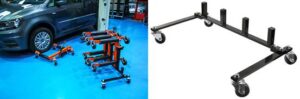 The lifting process is smooth and rapid, elevating the tyre off the ground without any contact with the vehicle’s chassis or bodywork. Designed with a low centre of gravity, the Hy-Jacks ensure stability during operation, allowing precise vehicle placement within the workshop or garage.