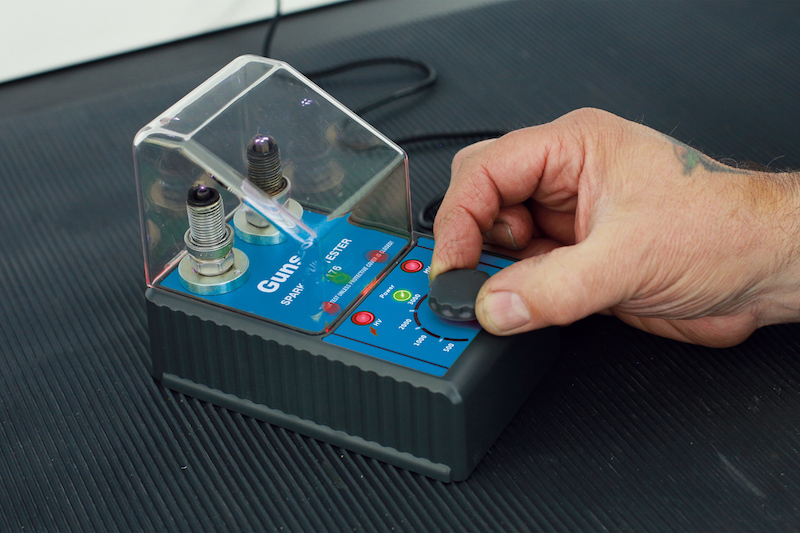 The simulated RPM output is easily adjusted from 1000rpm to 6000rpm, testing the spark plug throughout this rev range; a plug may seem to be sparking adequately at cranking or idling speeds but breaks down at higher RPM. Importantly, with dual testing ports, users can easily compare two spark plugs simultaneously, assisting in diagnosis. A brand-new plug can be compared with an existing plug removed from the engine, for example.
